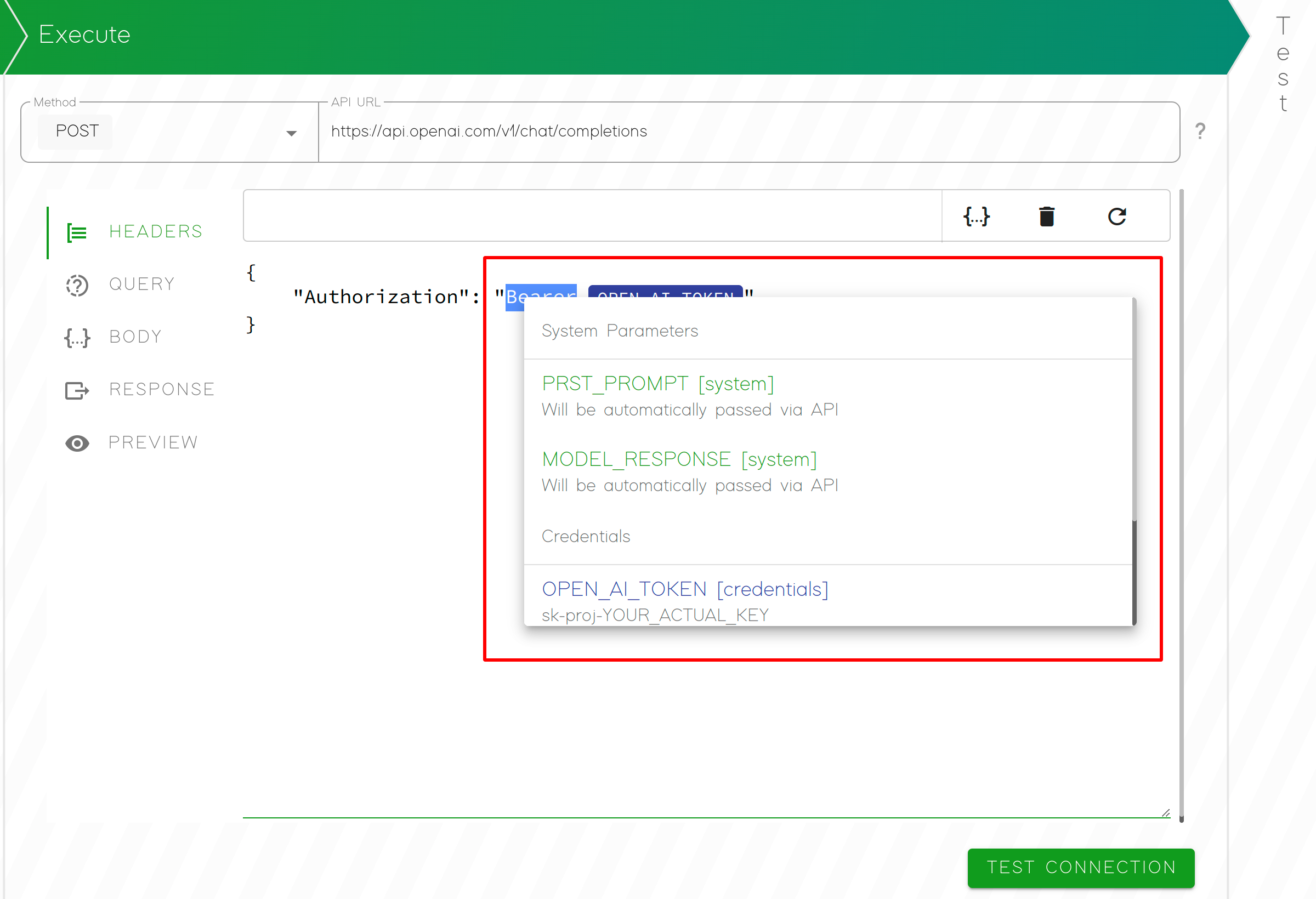 π‘ Note: PRST Connector offers a unified interface to integrate with various AI provides. using UI configurations it's possible to change ID in request without need to rebuild the whole integration.